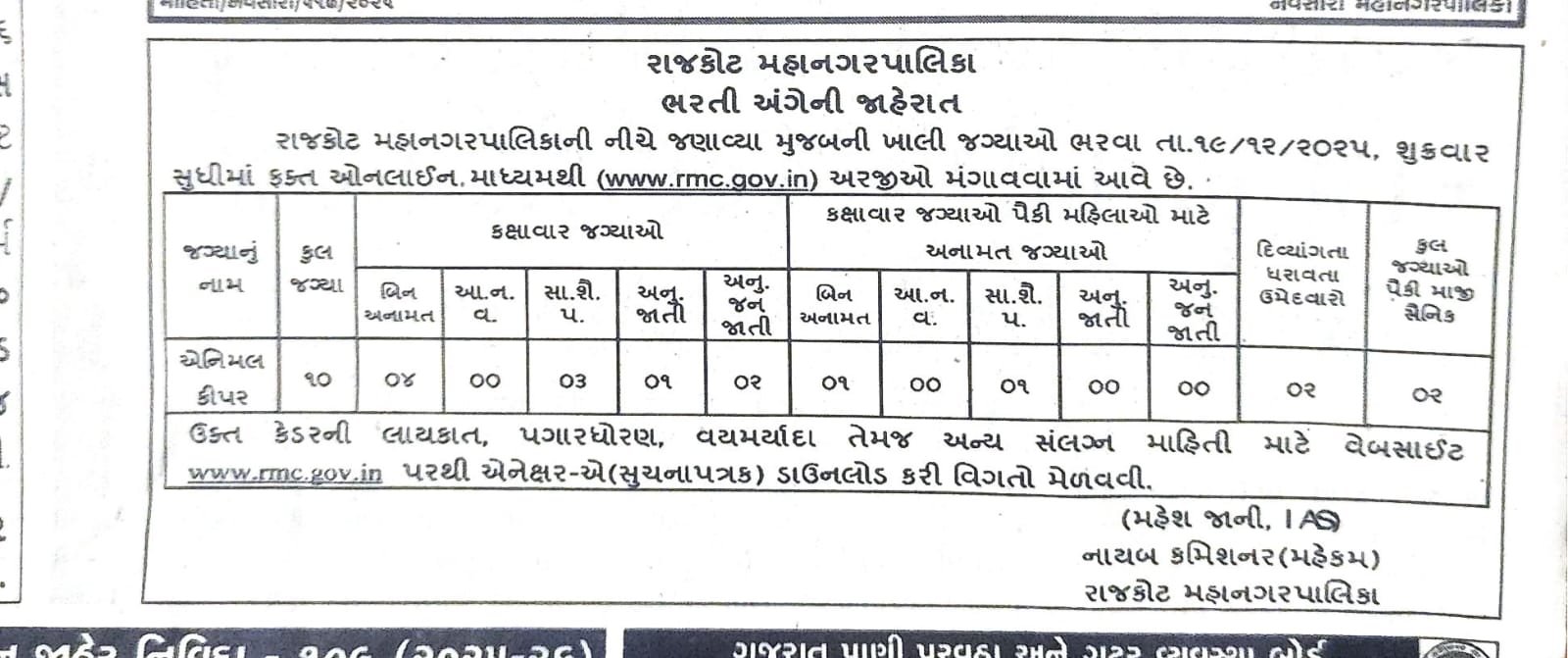 RMC Recruitment 2025: રાજકોટ મહાનગરપાલિકા દ્વારા વિવિધ પદો પર સ્ત્રીઓ તથા પુરુષો માટે ભરતી જાહેર